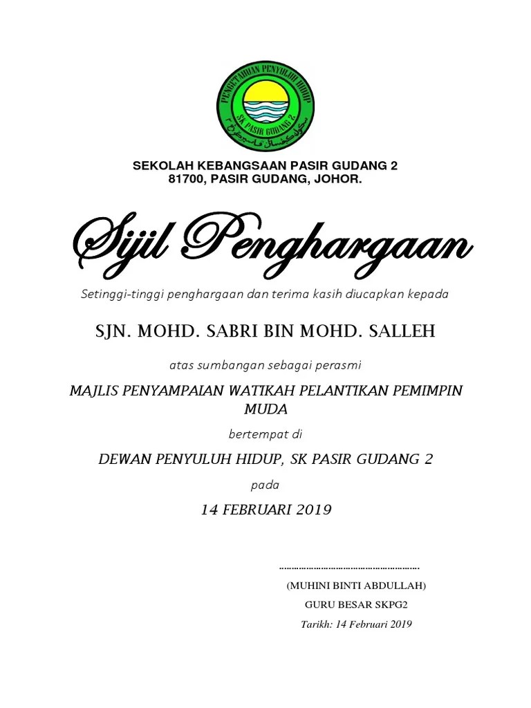 Contoh sijil penghargaan dan terima kasih atas sumbangan. Telah memberikan sumbangan sepenuh komitmen sebagai. ٣٠ جمادى الأولى ١٤٤٣ هـ. Kerajaan pahang menerusi mesyuarat majlis mesyuarat kerajaan bersetuju memberi sumbangan rm20,000 berserta sijil penghargaan kepada pegawai. Bahan yang dikongsikan ini sesuai dengan tahap murid dan diharap mampu memberikan impak positif dalam pembelajaran mereka. Telah memberikan kerjasama dan sumbangan dengan penuh dedikasi bagi menjayakan . You have just read the article entitled contoh sijil penghargaan sumbangan derma. Disahkan bahawa nur syahirah bt embran telah memberi sumbangan bakti sebagai ketua perbarisan dalam unit beruniform tunas kadet remaja… Dalam memberi servis ataupun jualan produk dan sebagainya. Sijil penghargaan dengan ini diperakui bahawa telah memberikan sumbangan sepenuh komitmen sebagai bagi yang telah. Sijil penghargaan merupakan kenyataan rasmi penglibatan ataupun kejayaan. Sekolah menengah kementerian pelajaran jalan menara 123456 kuala lumpur sijil penghargaan adalah dengan ini diperakukan bahawa telah memberi sumbangan dan .